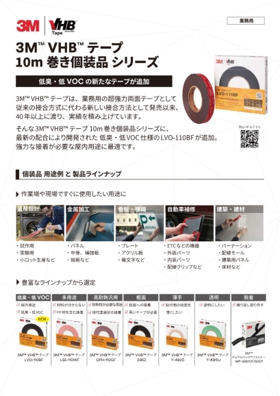 3M(スリーエム)社は米国に本社を置く多国籍企業で、 接着剤やテープ等の工業製品や自動車関連製品、 エレクトロニクス、日用消費財など 幅広い分野にわたり製品やサービスを提供しています。 3Mジャパン株式会社は日本市場に特化した 製品とサービスを提供する日本法人で、 日本国内においても多くの研究開発拠点を持ち、日本市場に適した製品の開発・販売をしています。